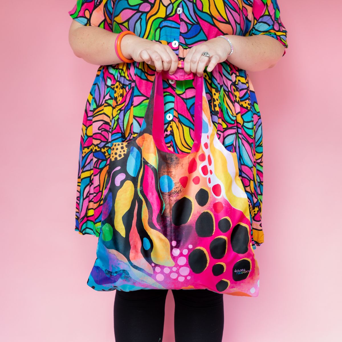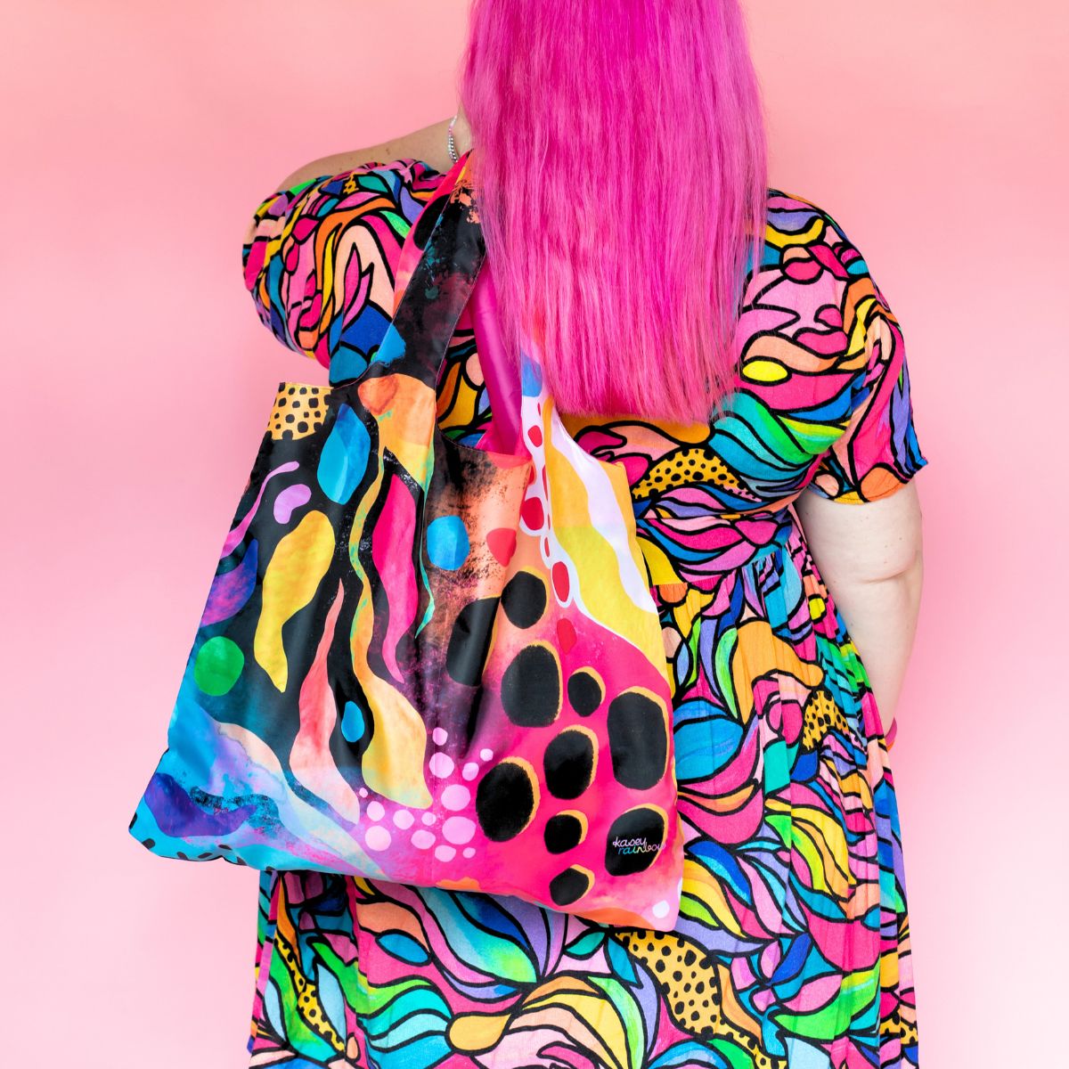 Shopping just got brighter! Say HELLO to this stunning Shopper Bag featuring original artwork by the incredible artist Kasey Rainbow.