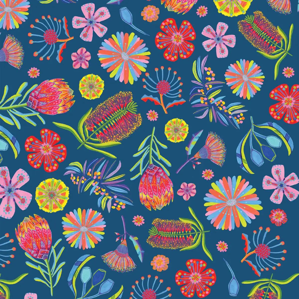 - Statement Floral Design – A colourful burst of spring blooms on a bold navy base