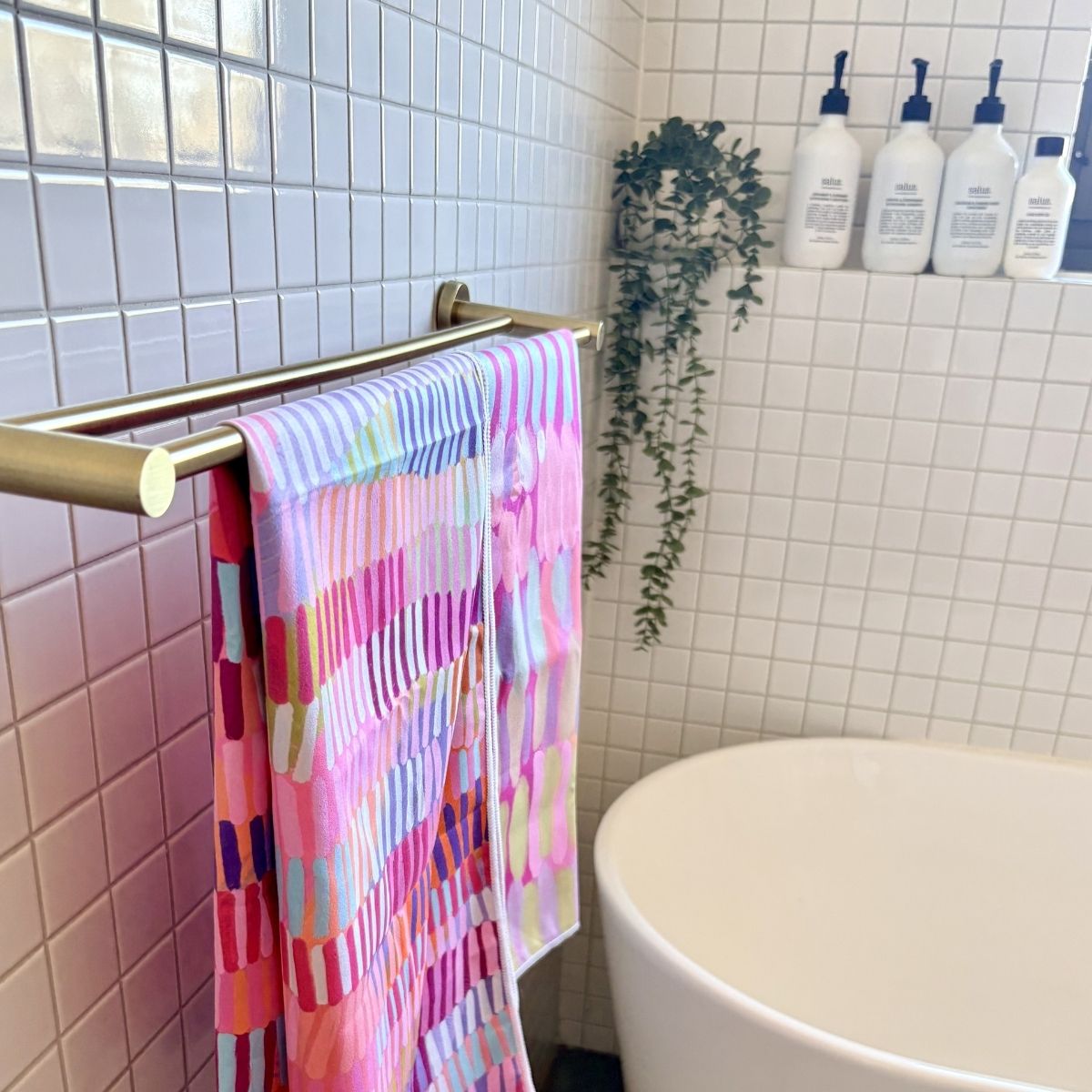 Made from ultra-absorbent microfibre using 100% recycled water bottles, this towel is as practical as it is joyful. Compact, quick-drying, and bursting with colour, it's perfect for gym days, beach dips, travel adventures, or even just brightening up your bathroom shelf.